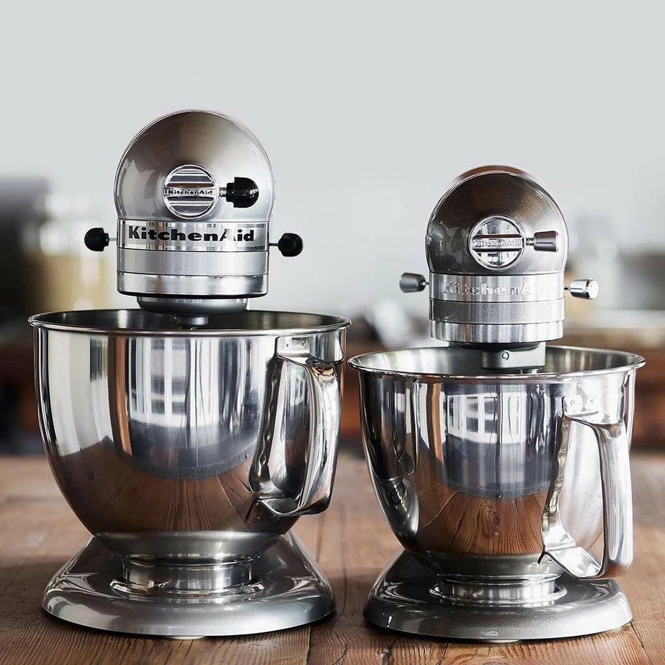 - Two bowls included – 4.8 L stainless-steel bowl with handle and 2.8 L stainless-steel mixing bowl useful for smaller quantities; both lock to base.