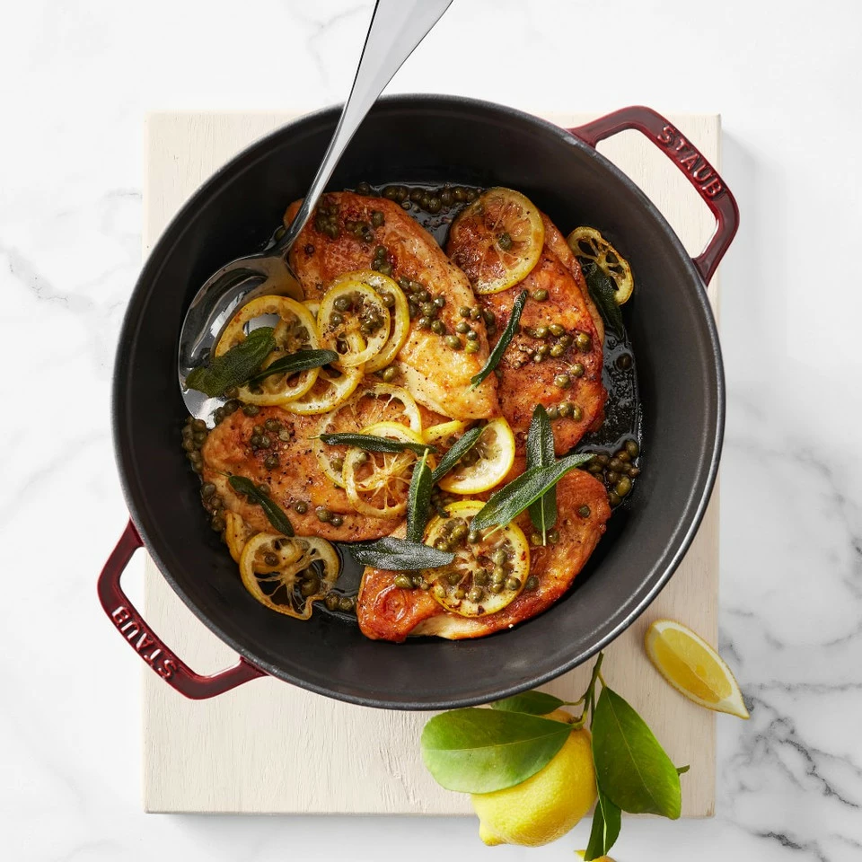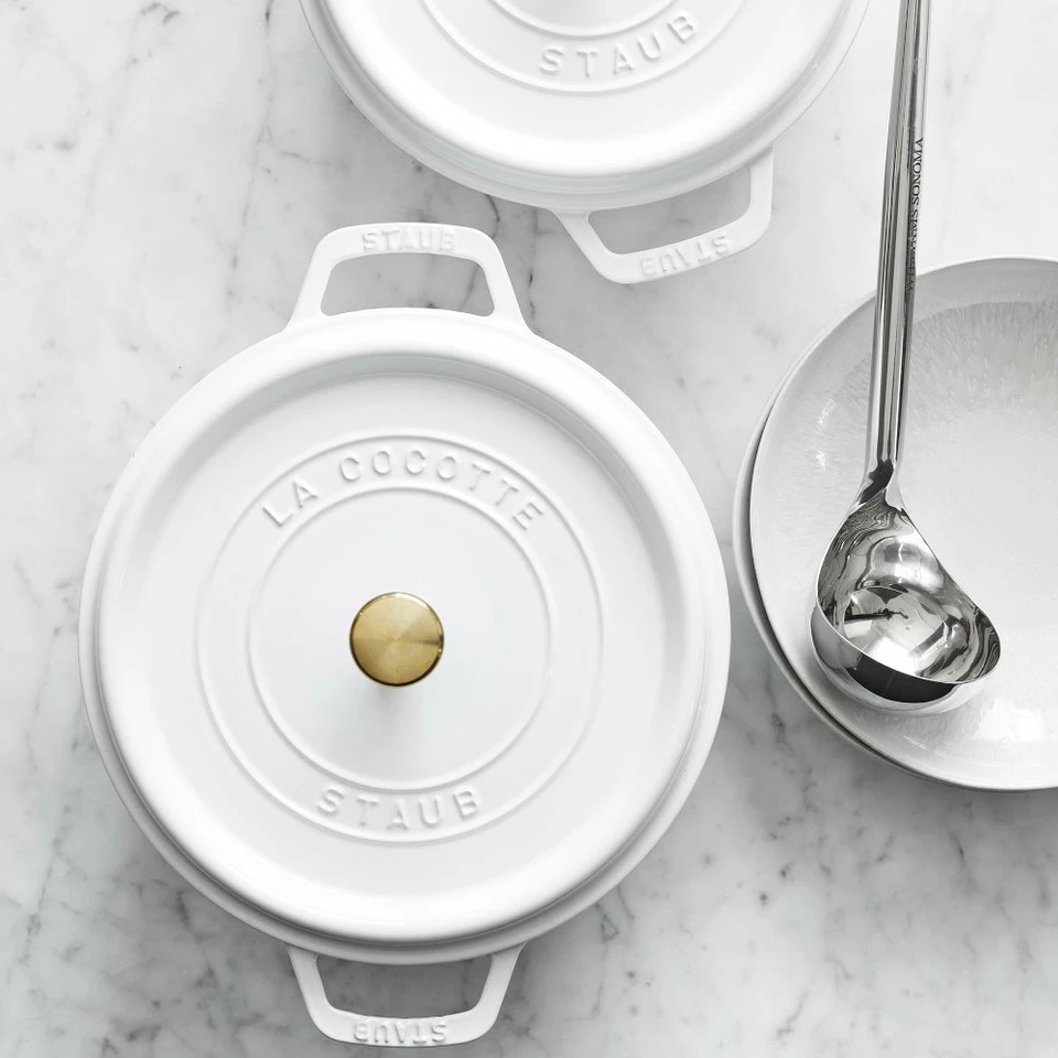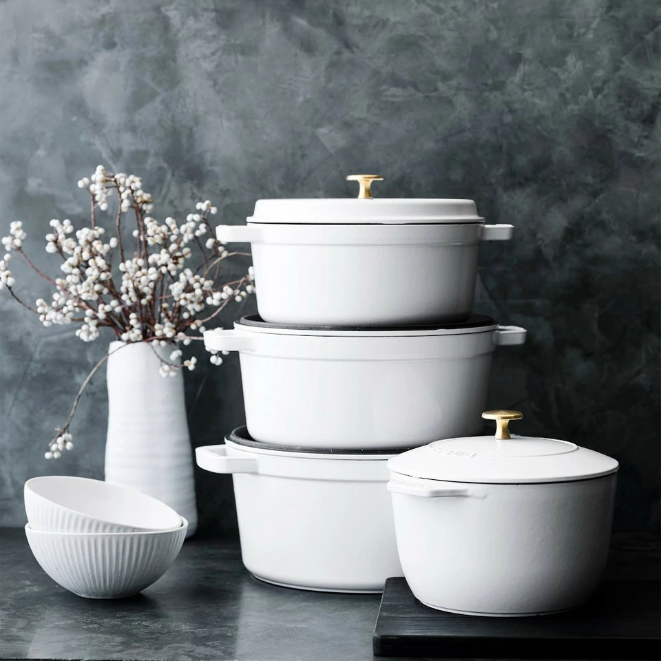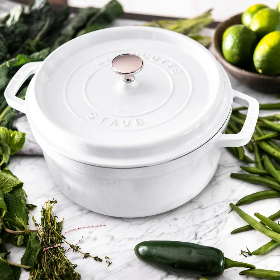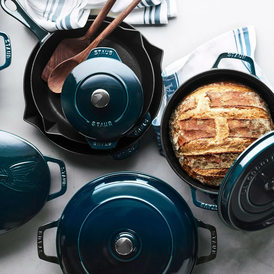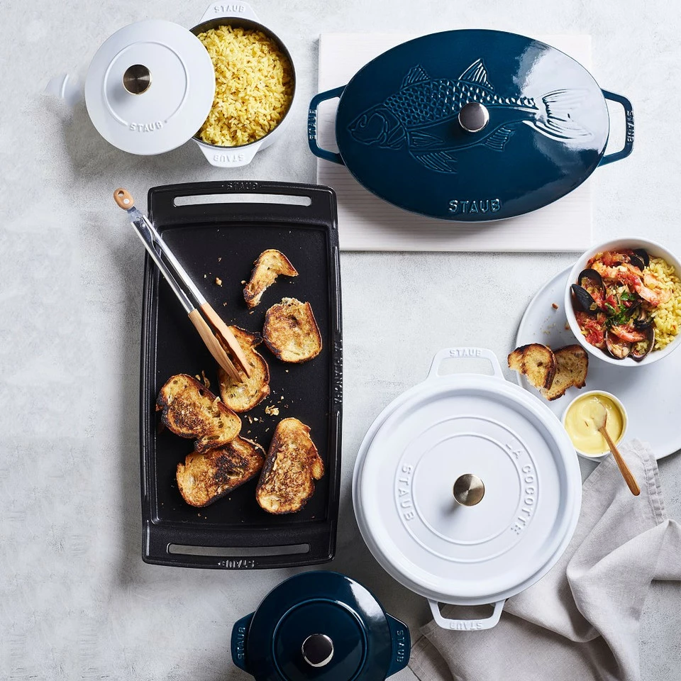 Staub’s innovative enamel coating takes cast-iron cooking to the next level with improved performance, style and durability. A heavy lid to seal in moisture paired with heat-retaining cast iron make this oven ideal for slow-cooking homemade chilli or a hearty casserole.