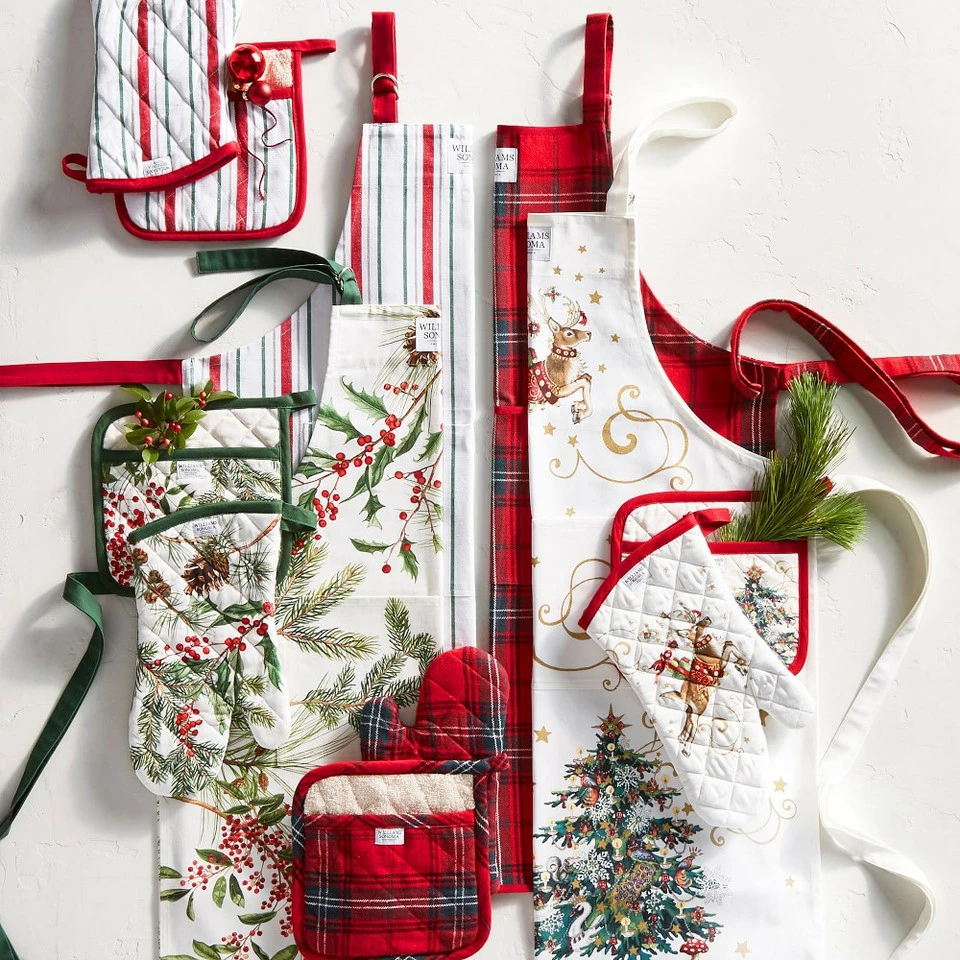 Celebrate the magic of the season with our printed oven mitt and potholder, inspired by the legendary 19th-century poem “A Visit from St. Nicholas”. Each is quilted for us at a venerable European mill of durable cotton twill with a terry towelling lining.