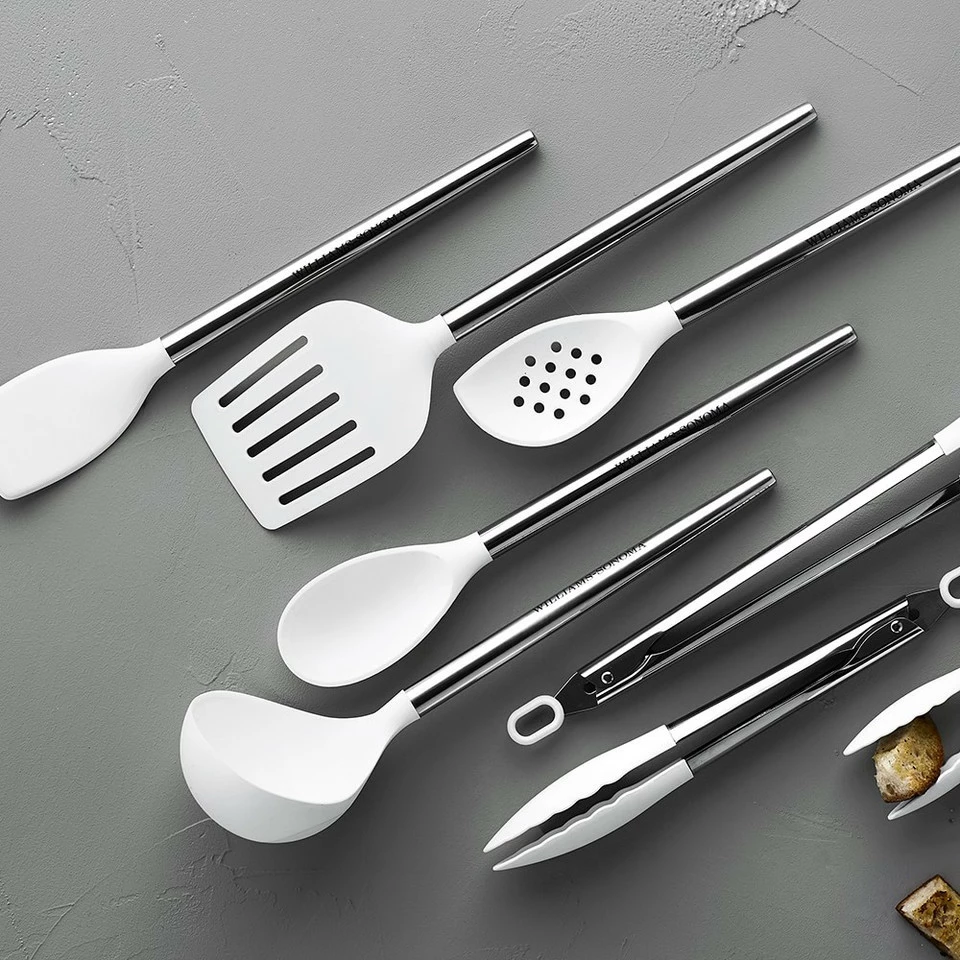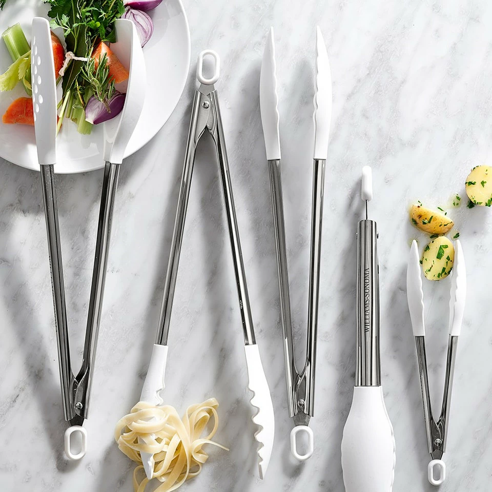 These durable tongs give a firm one-handed grasp on foods, whether you’re pan-frying or sautéing. The heat-resistant silicone tips have a non-slip surface, which allows them to precisely grip even the smallest portions.